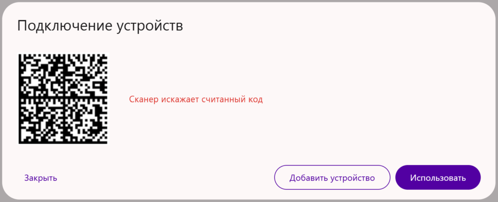 Если что-то не так — вы увидите: «Сканер искажает считанный код» (в будущем будем показывать, что именно не так):