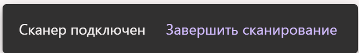 После успешного подключения внизу экрана появится надпись «Сканер подключен». Сервис принимает информацию со сканера только тогда, когда отображается это уведомление: